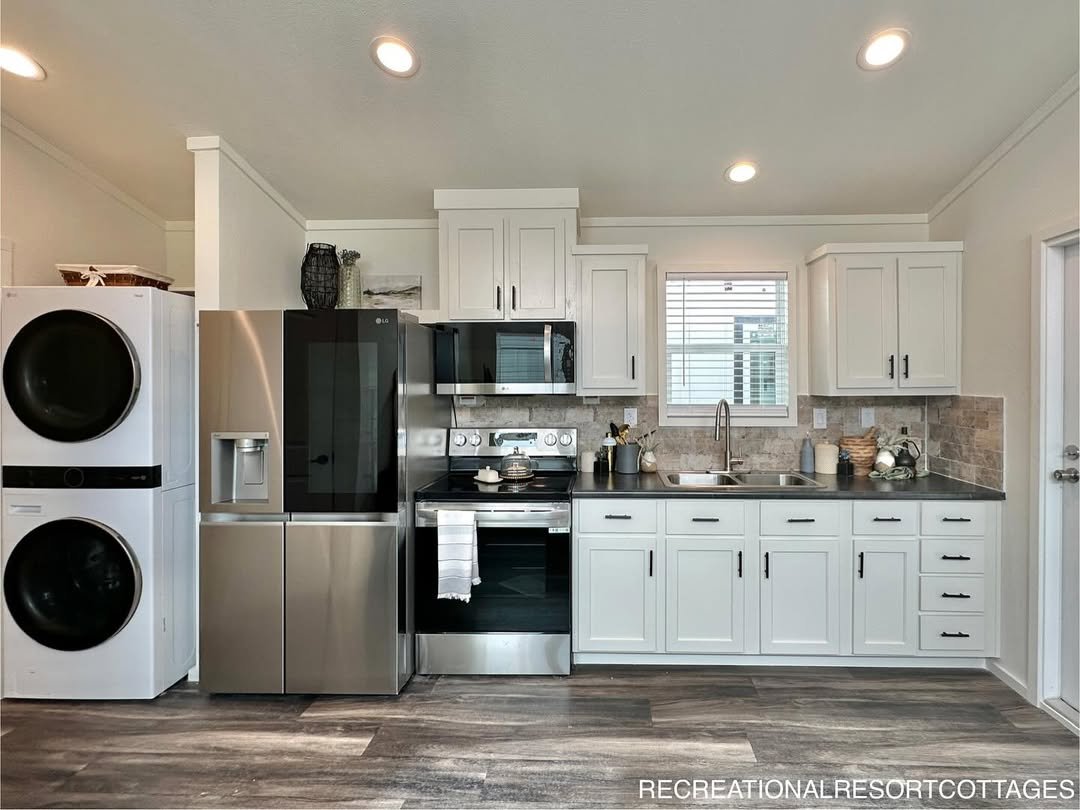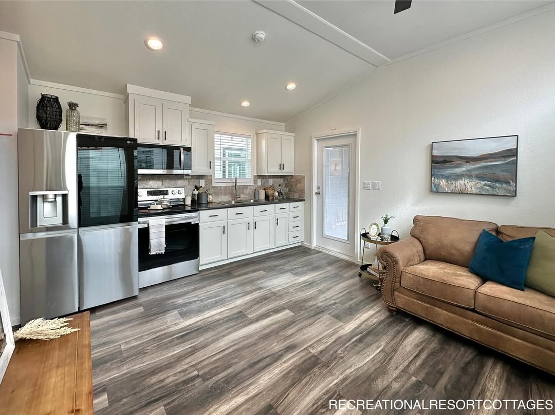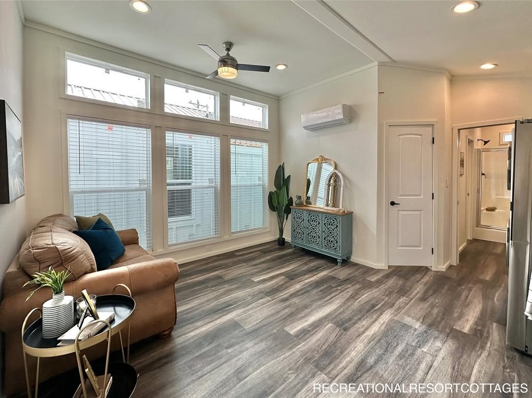 The floor to ceiling windows in the living room are perfect for any lot with a view, and it has a RVIA seal qualifying it for placement inside RV parks, as well.