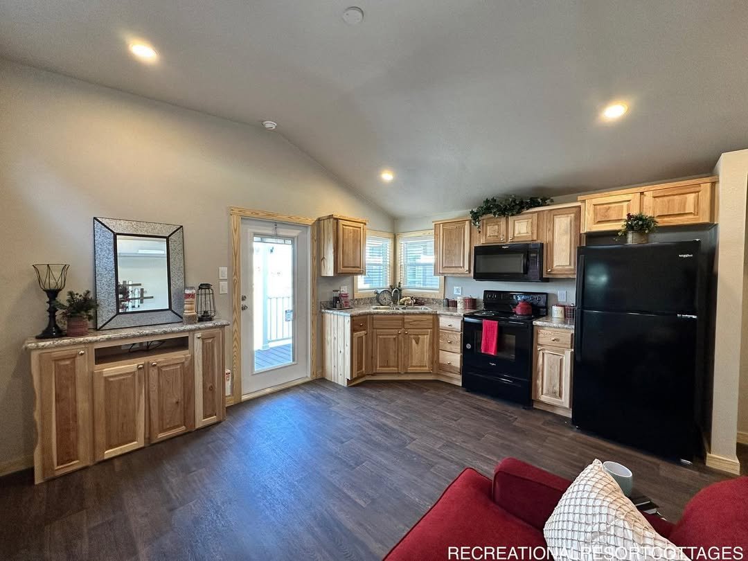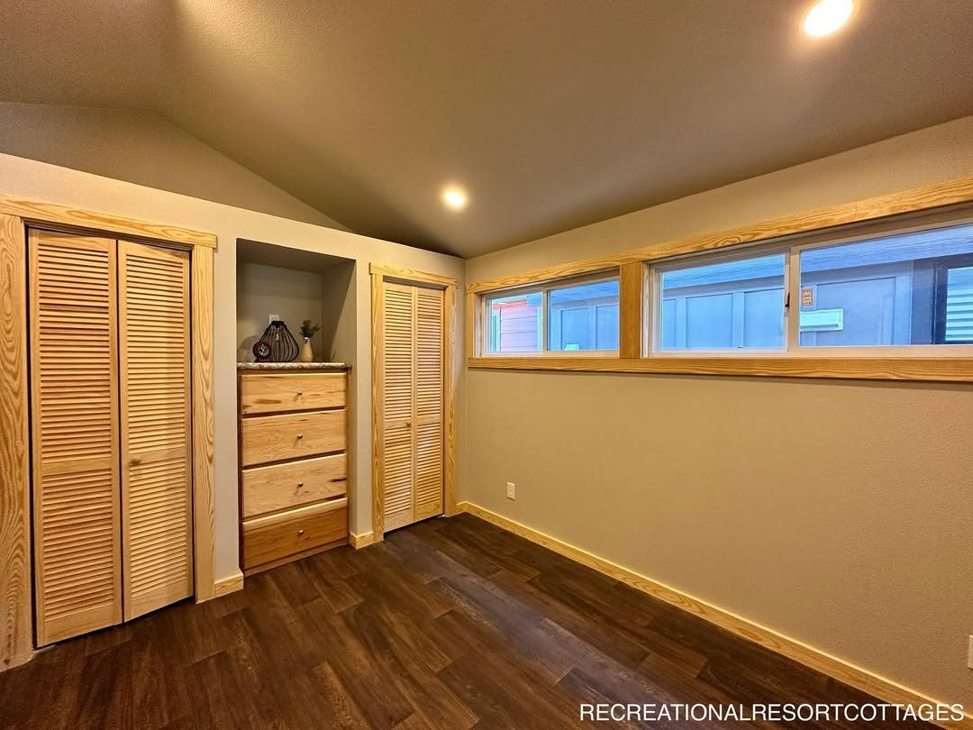 This is our most popular rv park model floorplan mainly because the bedroom fits a king size bed! It is also available with a loft, a kitchen island AND if the rustic style isn’t for you, then you can make it more modern or anything in between.