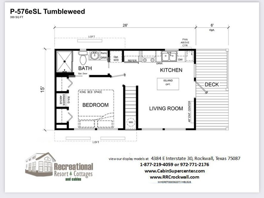 “Tumbleweed” 1 bed/1 bath 399 sq foot RV park model with a loft 🌲